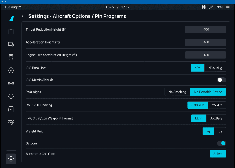 • The weight unit of the aircraft used for aircraft weight, fuel and simBrief imports.