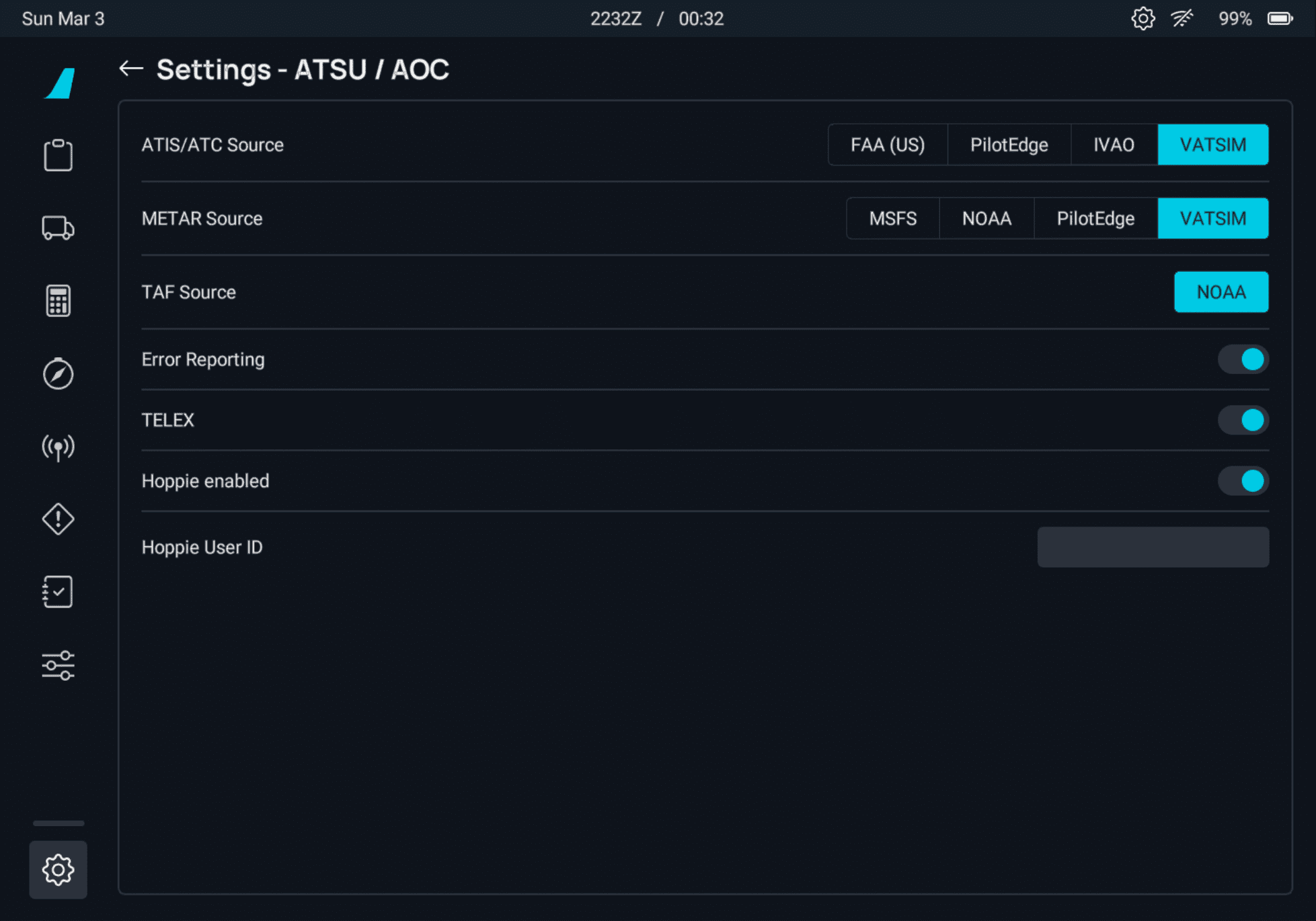 • Choose which Online ATC service should be used for ATIS and ATC.