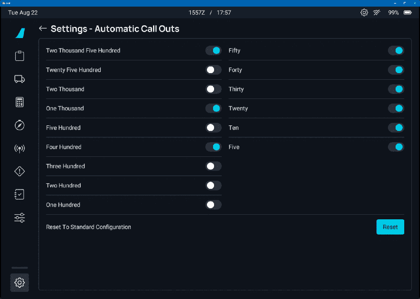 • Enable or disable the colored raw METAR on the flyPad Dashboard.