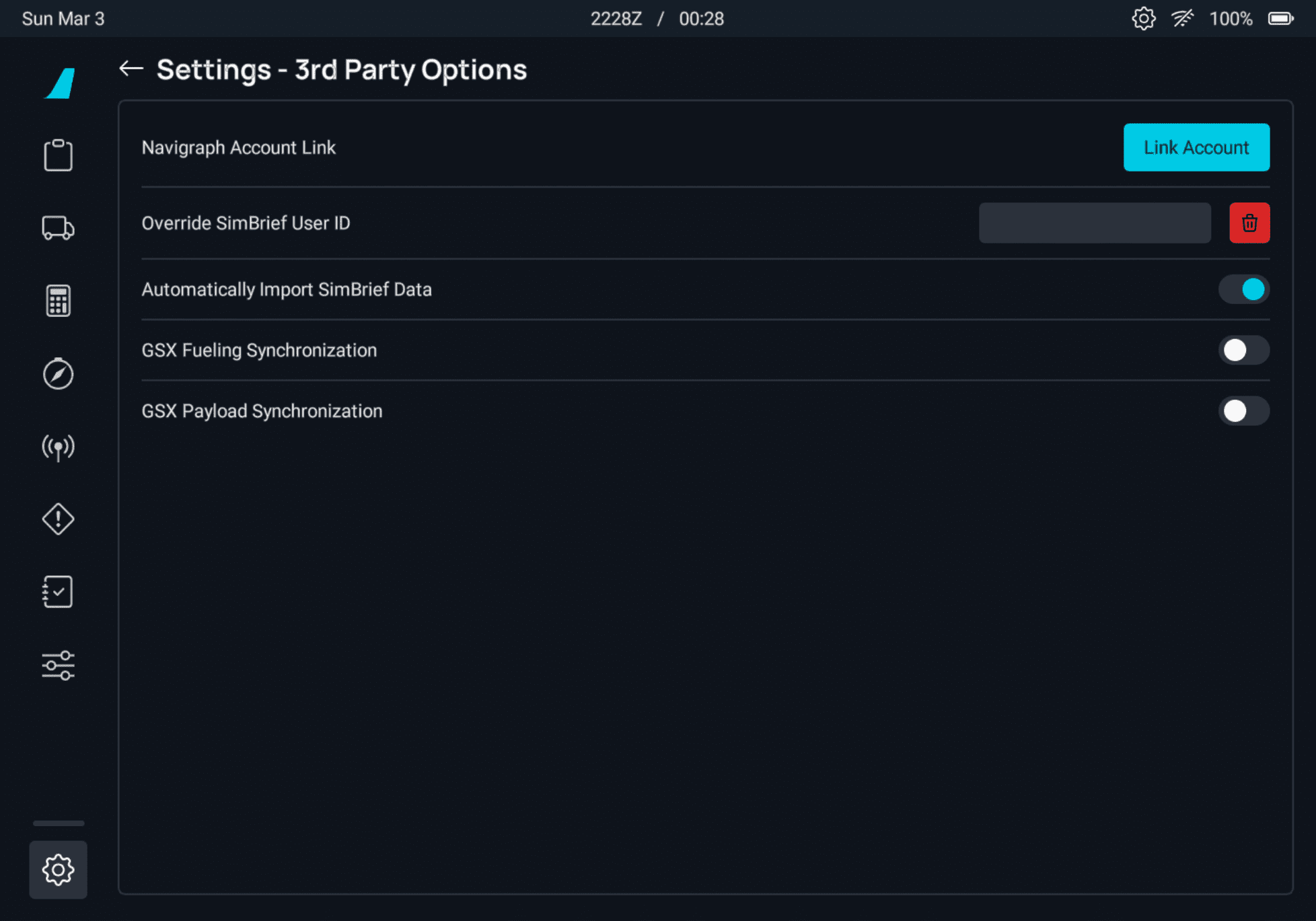 • User can set if and how the flight plan synchronization between the simulator and the aircraft should work.