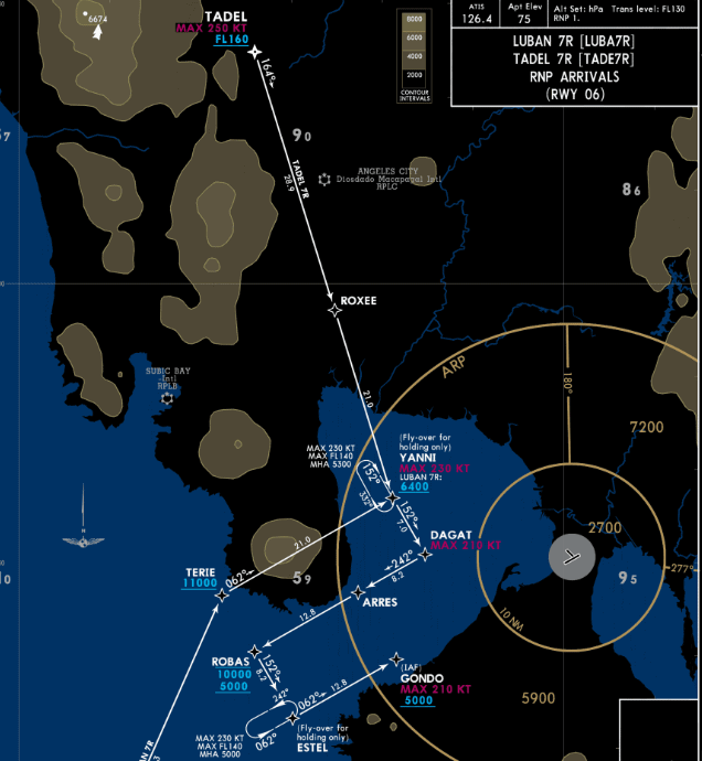 PORPAthere are a few different indicators described in more detail below. This is a result of information entered into the F-PLN page on the MCDU. - The final pseudo waypoint displayed is a cyan arrow indicating the point where the FCU commanded altitude (in our case, 7000 ft) will be reached.